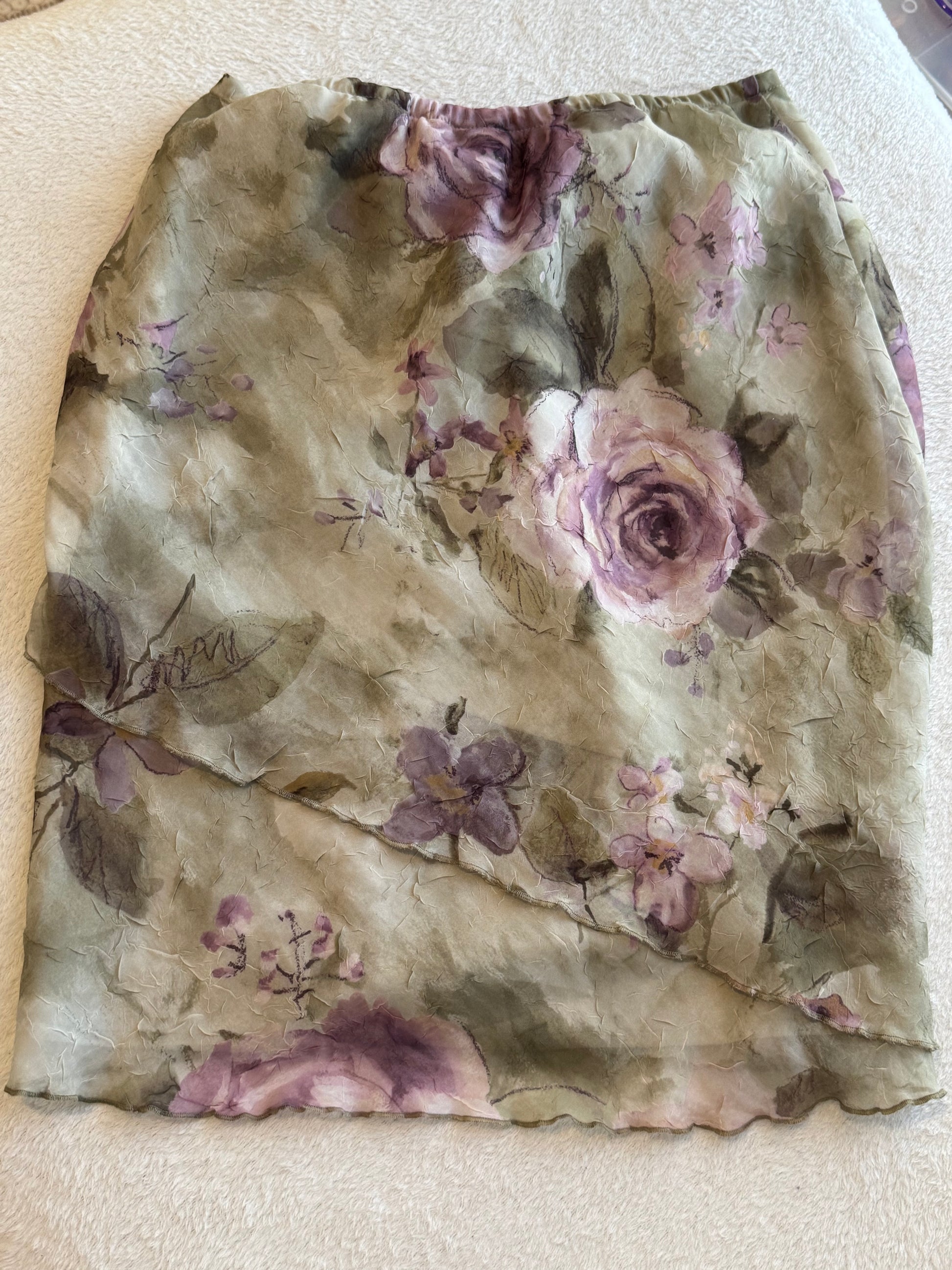 Beautiful, flowy top with green and purple flowers! Best fits size small.